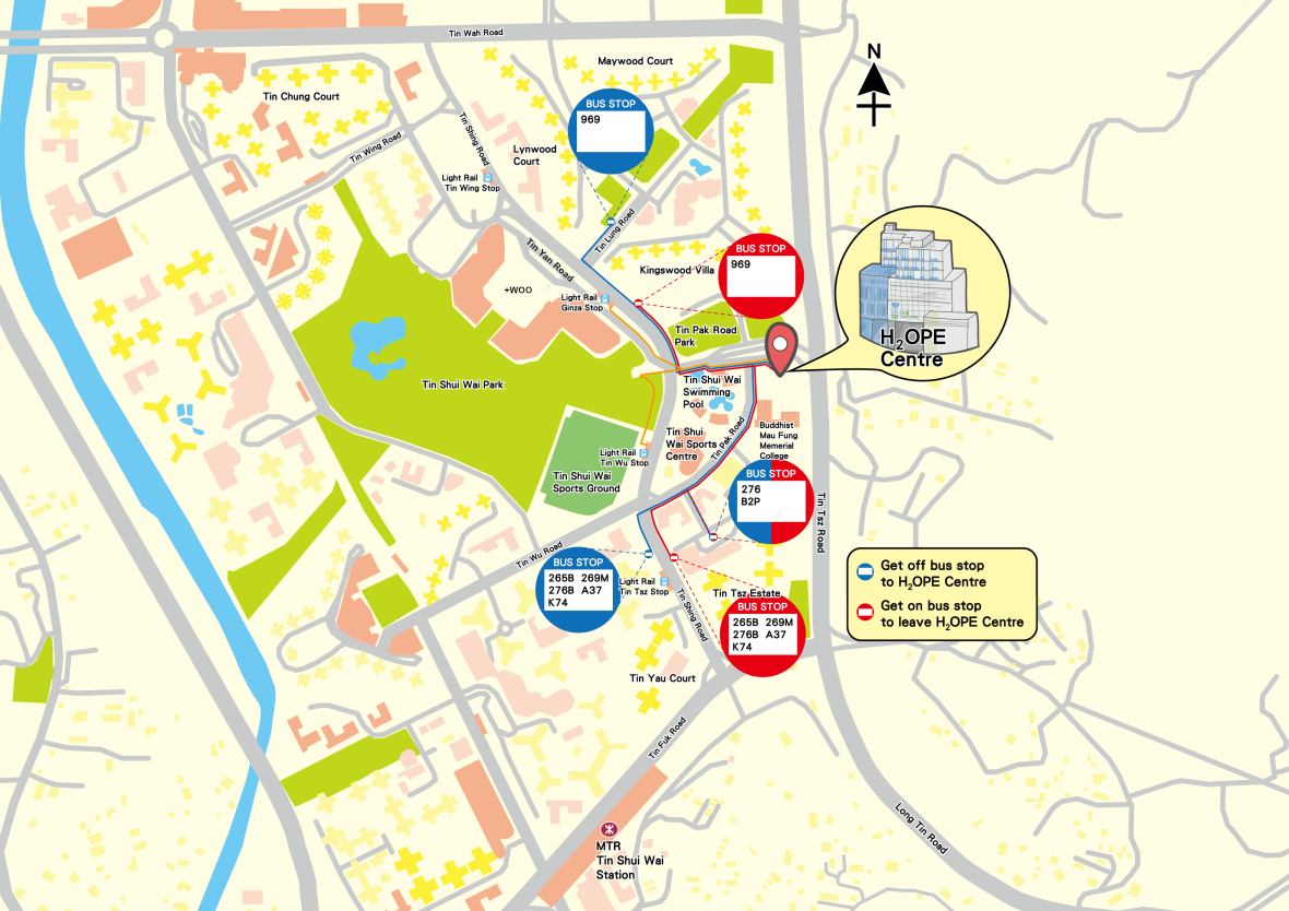 | Interchange with Light Rail 705 at Tin Shui Wai Station (Exit E1) or Light Rail 751 at Tin Shui Wai Station (Exit E2) to Tin Wu or Ginza Station |